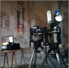 Mapping of original materials, degradation products and conservation materials for large areas and large collections; Revealing drawings and text; Preliminary identification of materials, mainly pigments and dyes; 3D point-cloud and accurate colour images for documentation.